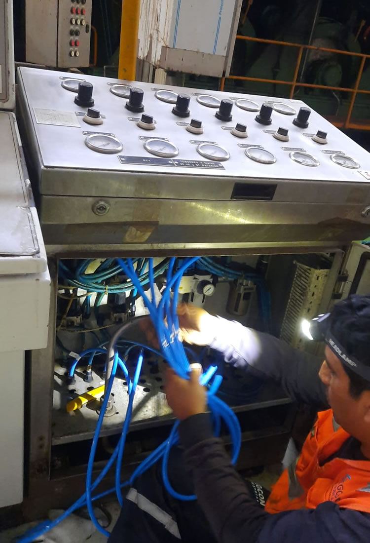 Tendido de cables de fuerza desde CCM1 hacia motores en campo.